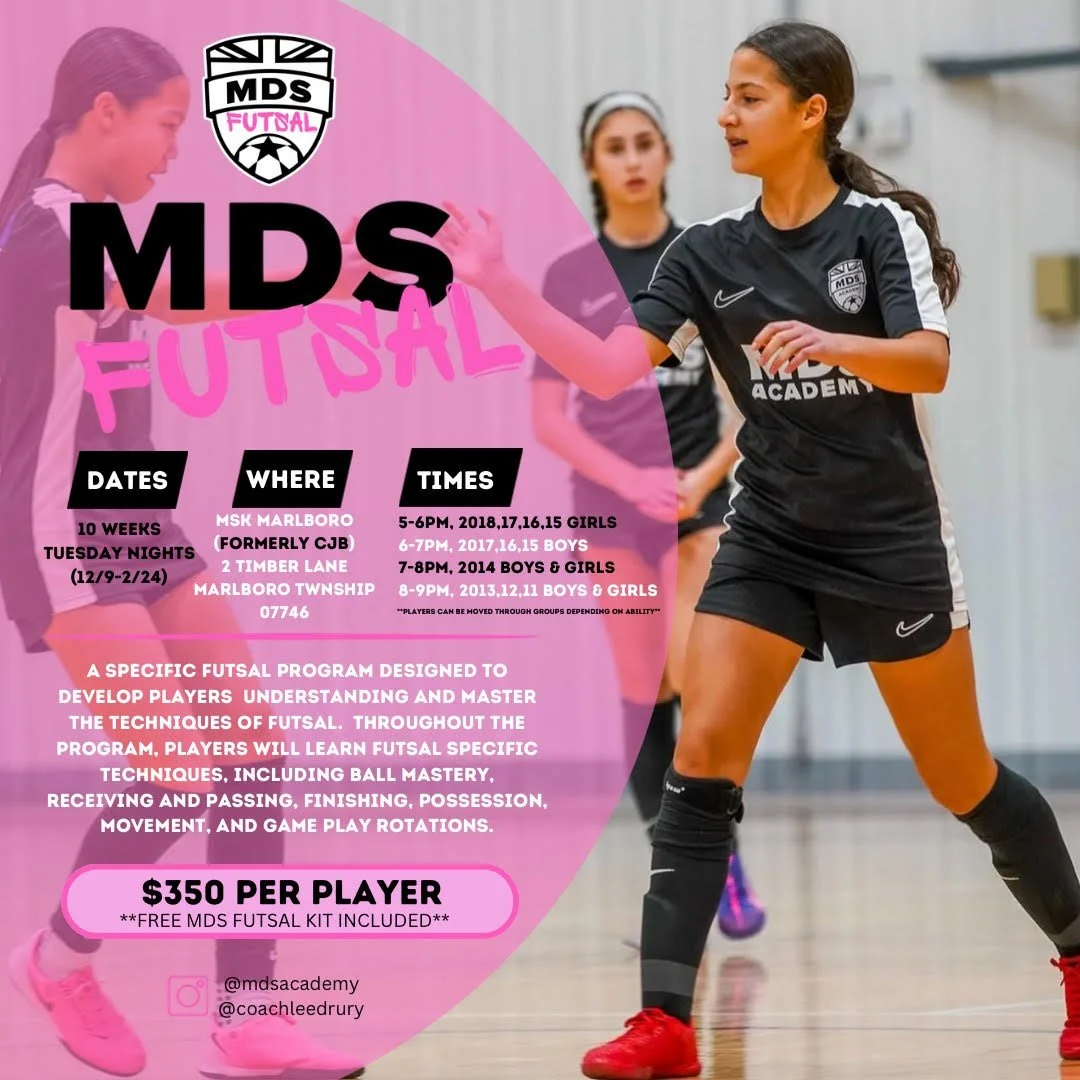We are thrilled to announce the launch of our brand new MDS FUTSAL program in Central Jersey, a project two years in the making! With no shortcuts or gimmicks, we dedicated our time creating a futsal specific program that enhances understanding and skill, demonstrating how futsal can be a powerful tool for the outdoor game. The program will run for 10 weeks, from December 9 to February 24 at MSK MARLBORO (formerly known as CJB - Central Jersey Basketball).